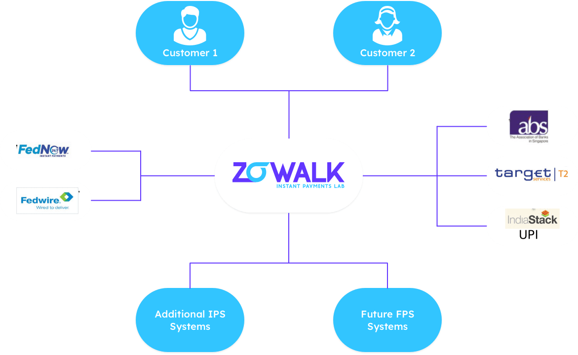 ZSigmaWalk is a real time network of networks built by weaving a web of connections with multiple domestic real time payment networks across the world including IPS and FPS systems.